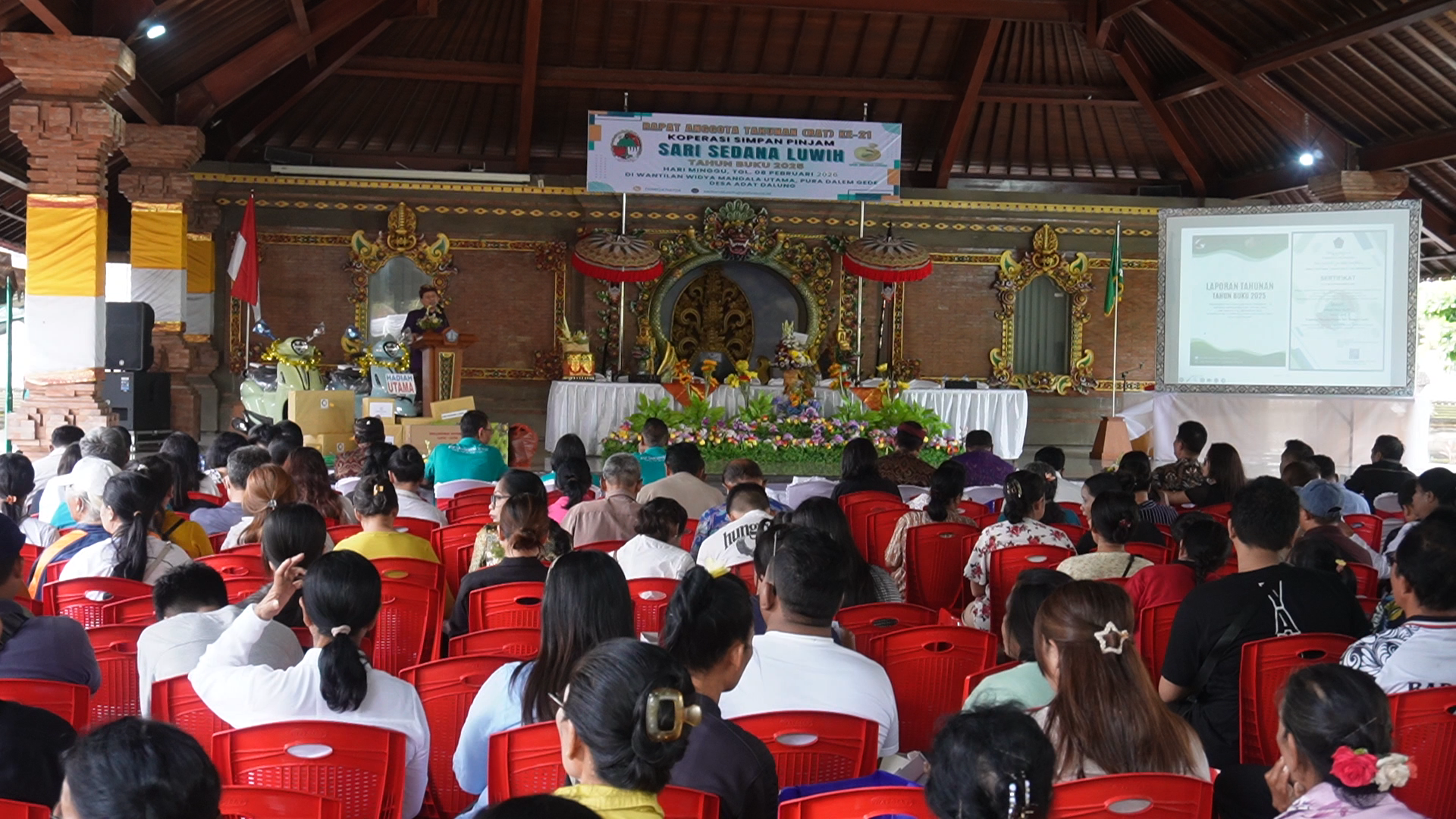 BADUNG, STATEMENTPOST.COM – Bertempat di Wantilan Widya Mandala Utama, Pura Dalem Gede Desa Adat Dalung, Koperasi Simpan Pinjam (KSP) Sari Sedana Luwih menggelar Rapat Anggota Tahunan (RAT) ke-21 Tahun Buku 2025, pada Minggu (8/2/2026). RAT ini bertujuan untuk melaporkan pertanggungjawaban pengurus dan pengawas selama satu tahun.